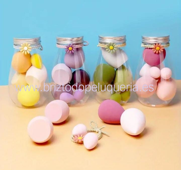 SET de ESPONJAS DE MAQUILLAJE presentadas en un bonito frasco